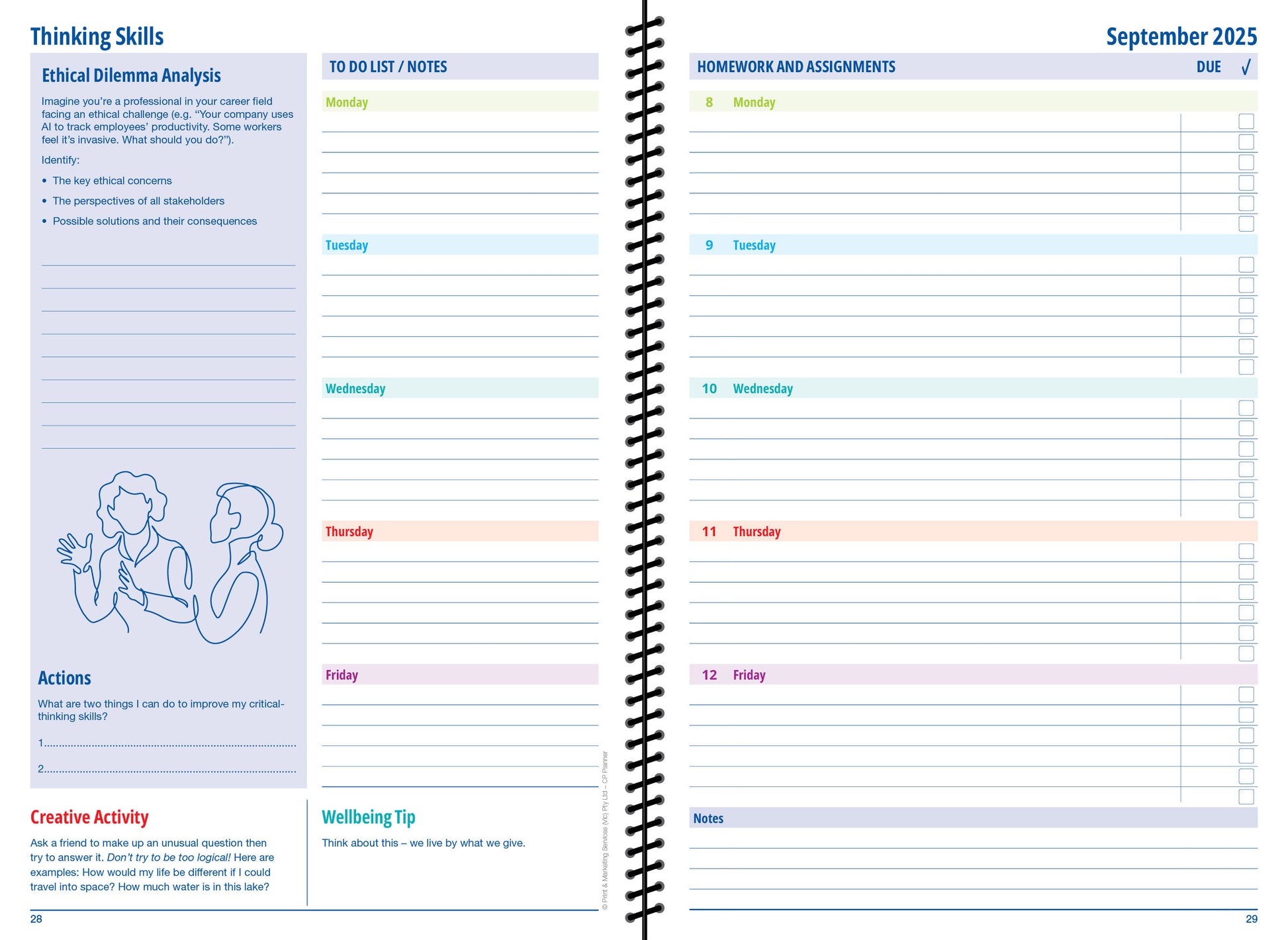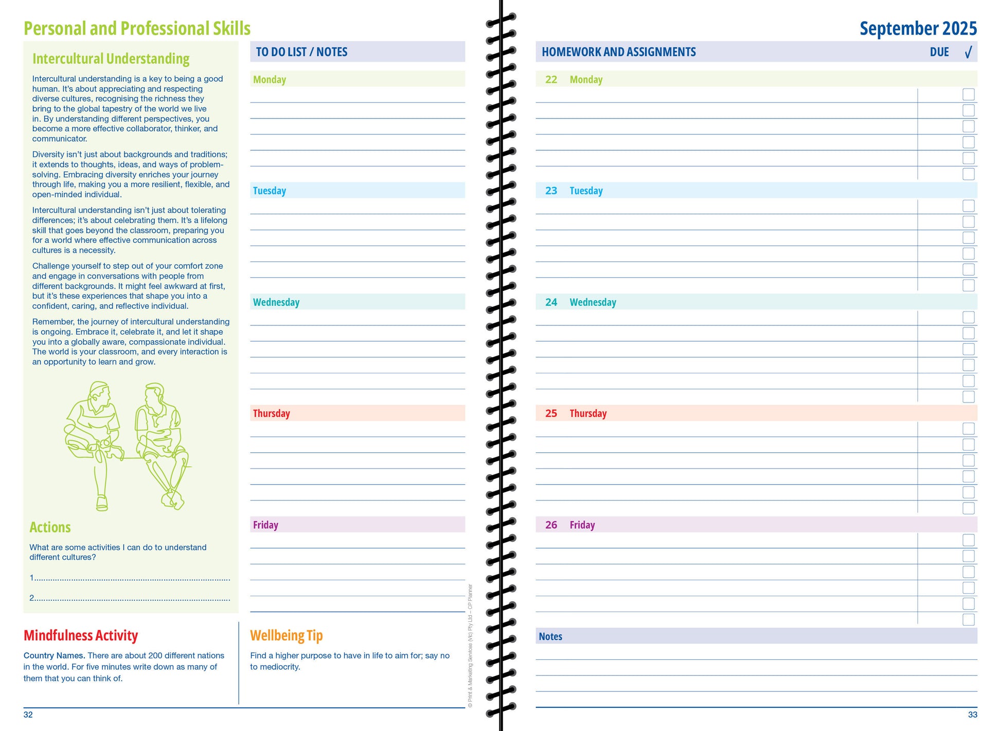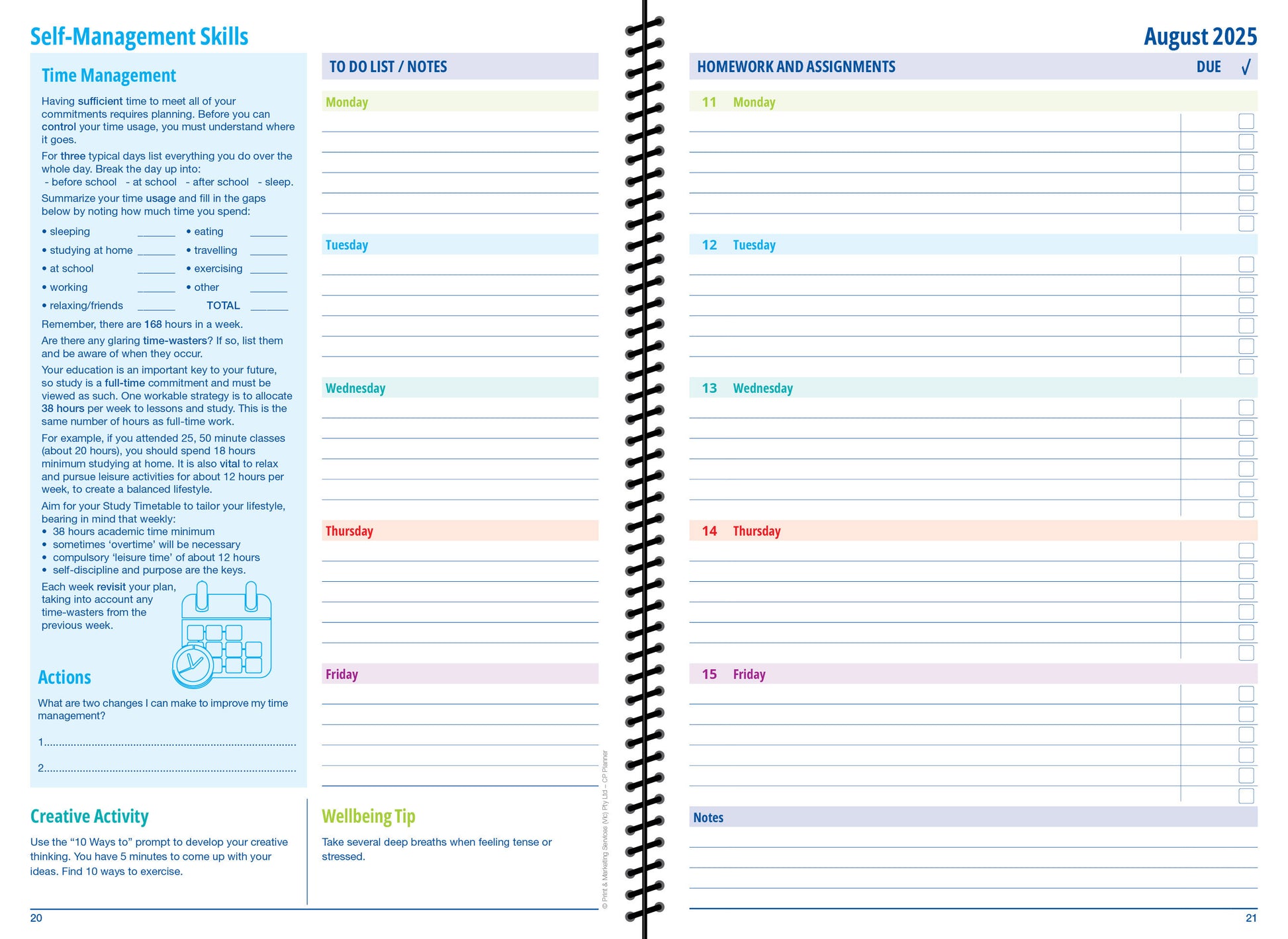 Designed specifically for IB Career-related Programme (CP) students, this 2025 CP Student Planner integrates wellbeing, personal growth, and academic strategies to support success in both studies and career-related learning. Each week, students engage with key Approaches to Learning (ATL) skills, fostering resilience, self-awareness, and goal-setting to help them thrive in their educational and professional pathways.