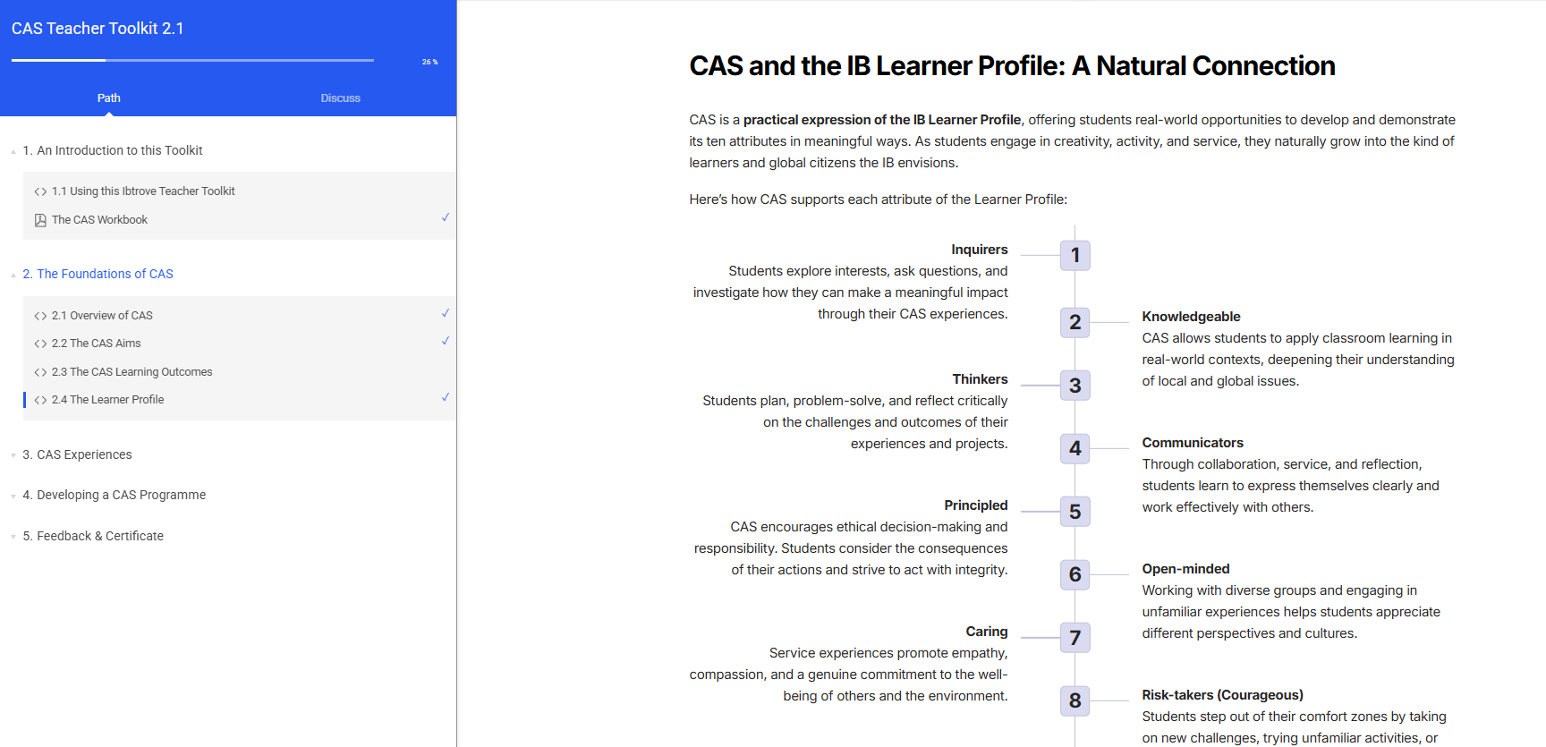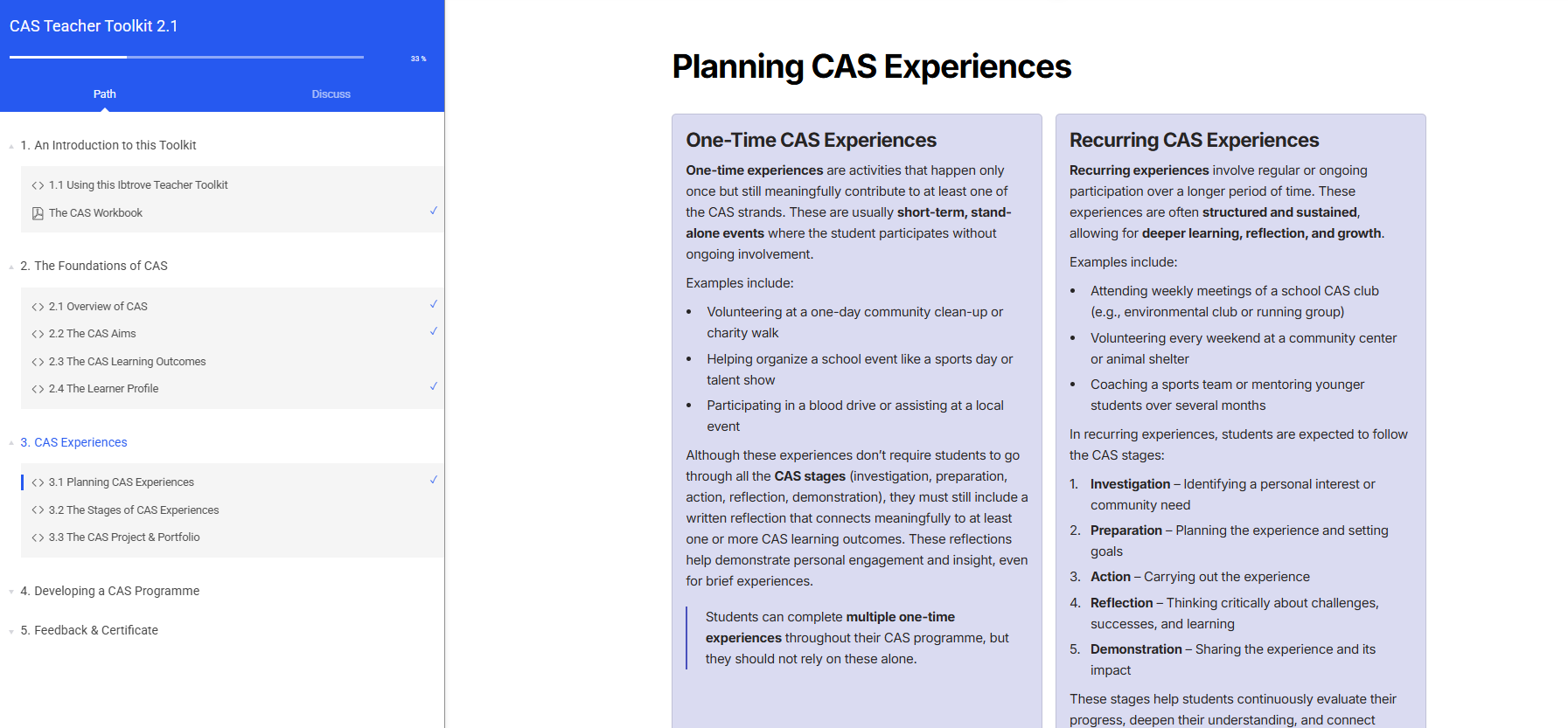 Guiding IB educators towards success. The CAS Teacher Toolkit 2.1 is an all-encompassing online resource designed to assist educators in delivering a top-notch CAS course within the International Baccalaureate Diploma Programme (IBDP).