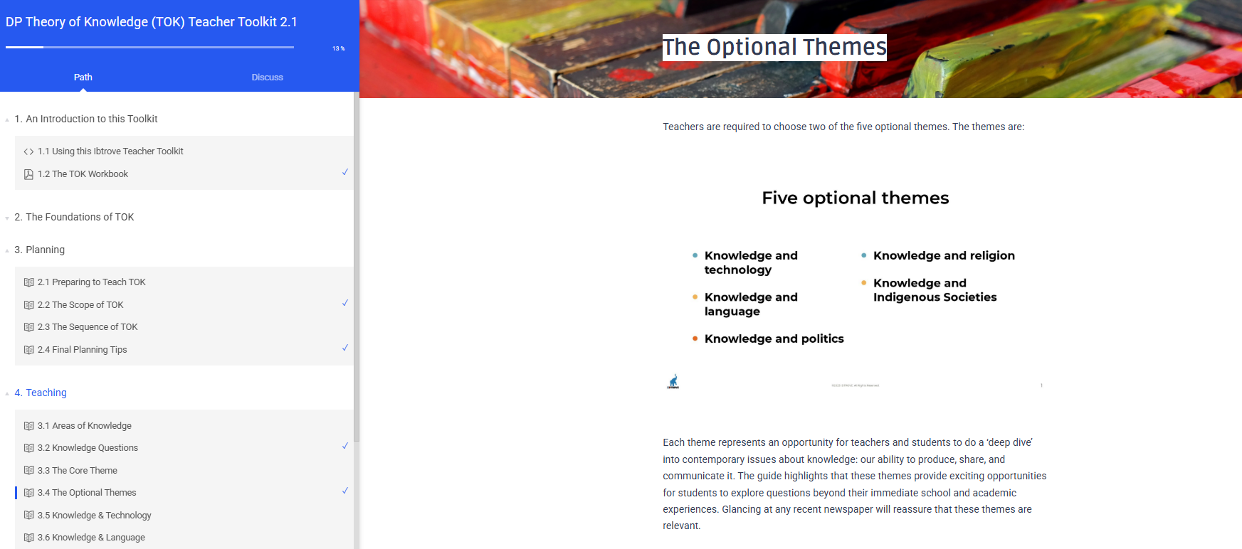 Crafted by experienced IB educators, the toolkit simplifies planning and enhances instruction across the full scope of the DP Theory of Knowledge curriculum. From museum visit activities to digital portfolio design tips, you’ll be fully equipped for student success.